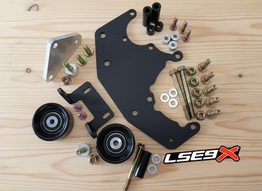 It mounts a Sanden 508 A/C compressor low on the driver’s side for proper belt wrap and clearance. The system reuses the factory LT alternator, water pump, and tensioner, and is compatible with BMW power steering pumps and lines with minor modifications and bending.